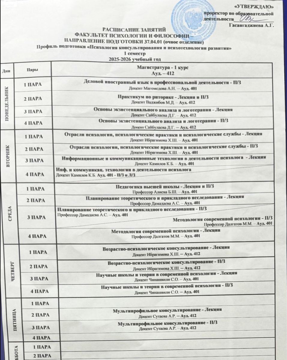 РАСПИСАНИЕ ЗАНЯТИЙ СТУДЕНТОВ ДНЕВНОЙ ФОРМЫ ОБУЧЕНИЯ. 47.03.01 - профиль. ФИЛОСОФИЯ бакалавриат